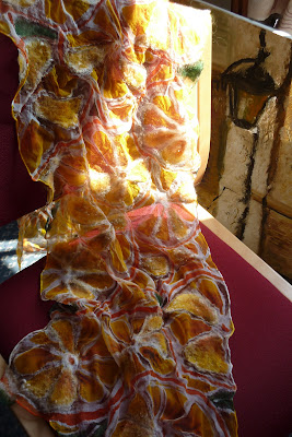Each orange was individually drawn out in gutta and then painted. I am now adding on bits of felt to make it even more special. It is almost done and I am already planning the next one. Do note one of my oil paintings in the background. Art has been neglected in the extreme in the past year or two, so sketching by the river, and painting in the studio, is definitely on the list. Speaking of art I need to start up the Life Drawing sessions again, which I lead here at Durham. Complete the long distance course for my certificate in Life Drawing, maybe dig up that long distance course on creative writing that has been hiding in the bottom draw. There is over 40 books I need to read and return to the library. Tax returns to fill, invoices to do... downgrade my belongings to two car loads before I need to move (at the moment there is a total of three!)...there is also that summer exchange to stitch for. I might stop listing now ... and actually do something...